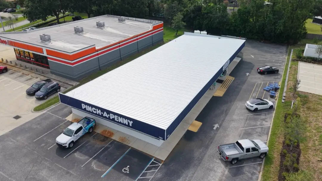 This project showcases a stunning before-and-after of a complete metal roof upgrade. The old, weathered roof was replaced with a sleek, high-performance metal system that not only enhances durability but also elevates the building’s overall look. The result is a clean, modern finish built to withstand the elements for years to come.